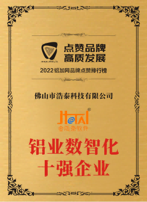 浩泰科技入選2022年南海區(qū)制造業(yè)數(shù)字化轉(zhuǎn)型服務(wù)商資源池。 浩泰科技獲得2022年鋁加工供應(yīng)鏈專精特新優(yōu)秀企業(yè)。 浩泰科技在2022鋁加網(wǎng)品牌點(diǎn)贊排行榜中榮獲鋁業(yè)數(shù)智化十強(qiáng)企業(yè)。