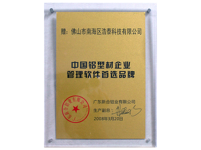 2008年7月20日公司形象宣傳片拍攝完畢。 2008年8月8日,在奧運(yùn)會(huì)開幕的同一天,《鋁業(yè)專家8.0》正式定版,其標(biāo)志著一套鋁材管理流程的成熟和進(jìn)步。 2008年10月3日,金浩泰軟件引進(jìn)新的加密方式,采用USB加密狗硬件加密形式進(jìn)行加密,省去了多機(jī)注冊(cè)的麻煩而且更好的進(jìn)行管理,加密狗也全面應(yīng)用到鋁業(yè)專家8.0以上版本、E經(jīng)理最新版本。 2008年9月開始,繼偉業(yè)之后,三水廣成正式的加盟《鋁業(yè)專家》使得浩泰科技的品牌在佛山乃至全國(guó)都掀起了一陣《鋁業(yè)專家》ERP旋風(fēng)。山東的蒙山鋁業(yè)等等相繼與浩泰合作。