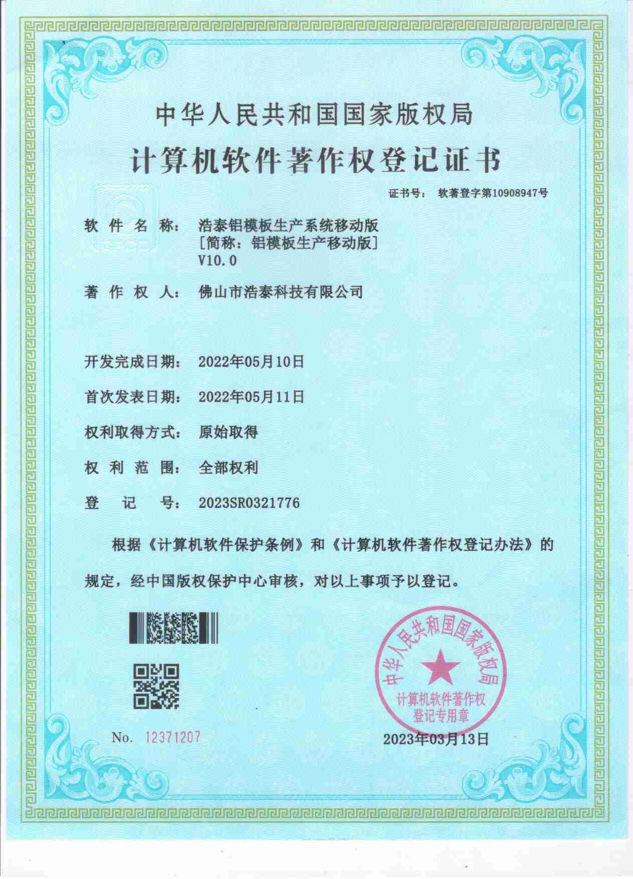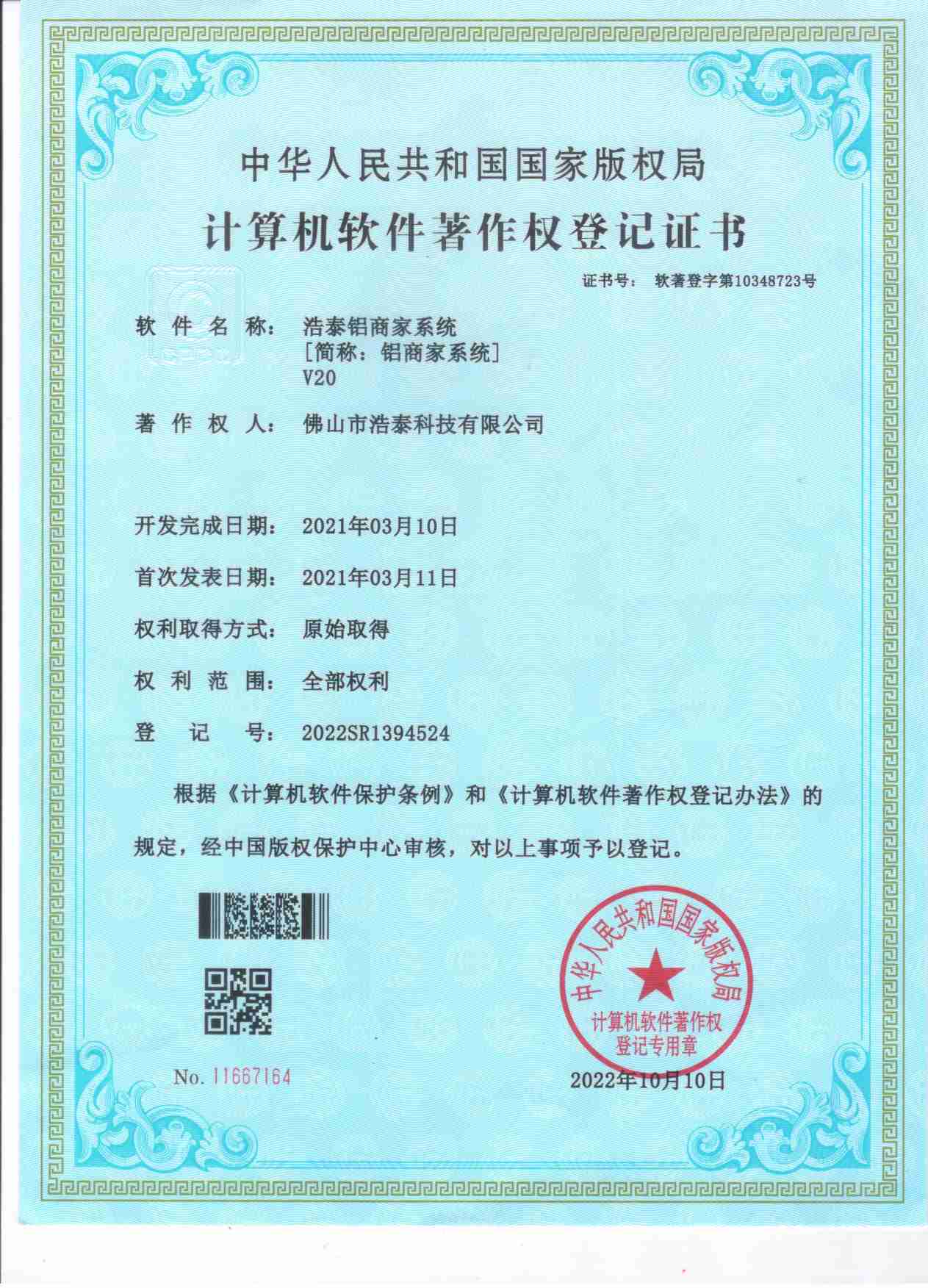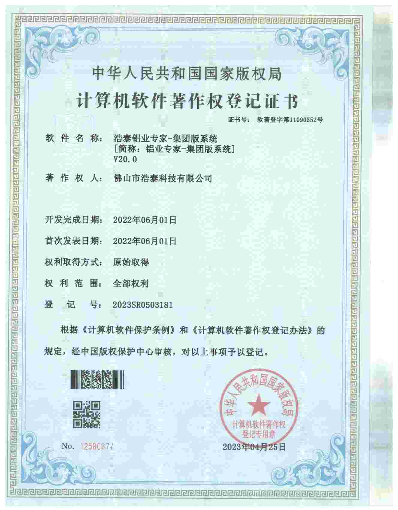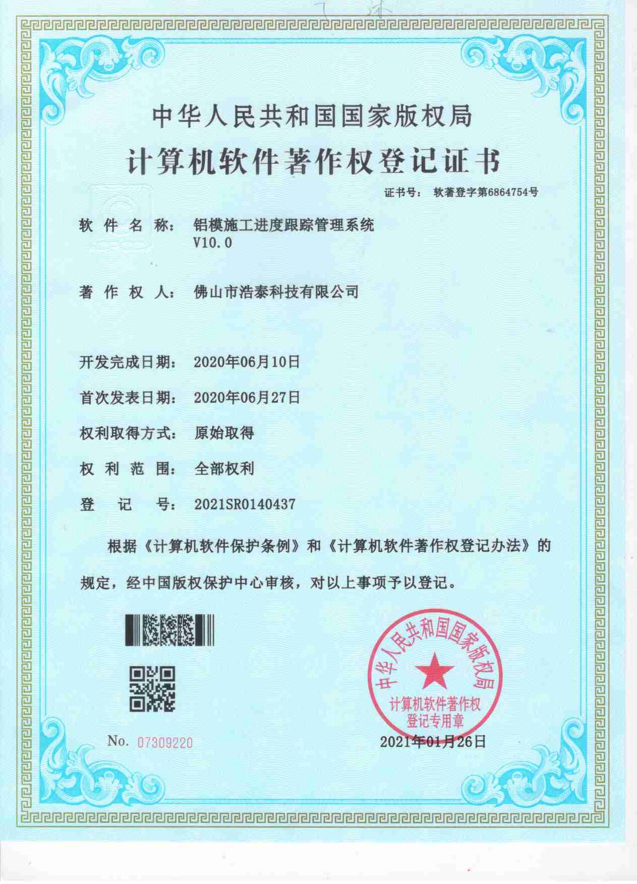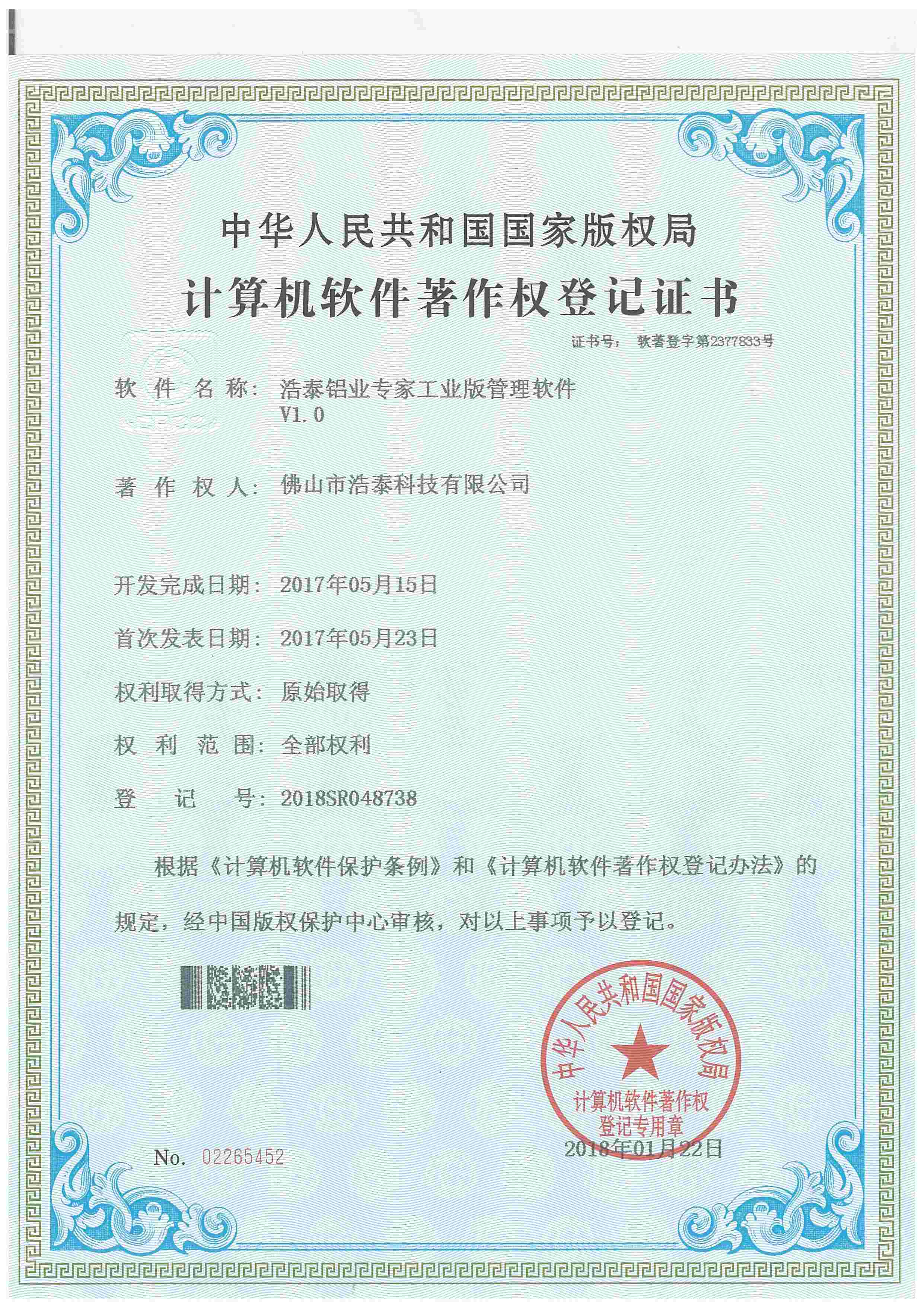 浩泰鋁箔專家系統(tǒng)V1.0,浩泰鋁商家管理軟件V1.0,浩泰鋁模板生產(chǎn)管理系統(tǒng)V1.0,浩泰項(xiàng)目管理系統(tǒng)V1.0,浩泰訂單中心管理軟件V1.0,浩泰鋁業(yè)專家工業(yè)版管理軟件V1.0,浩泰建材租賃信息系統(tǒng)V1.0,浩泰啟航平臺(tái)V2.0,浩泰移動(dòng)辦公中心軟件V1.0,10個(gè)軟件商標(biāo)注冊(cè)成功,鋁業(yè)專家云端ERP上線,同時(shí)我司取得高新技術(shù)企業(yè)榮譽(yù)!