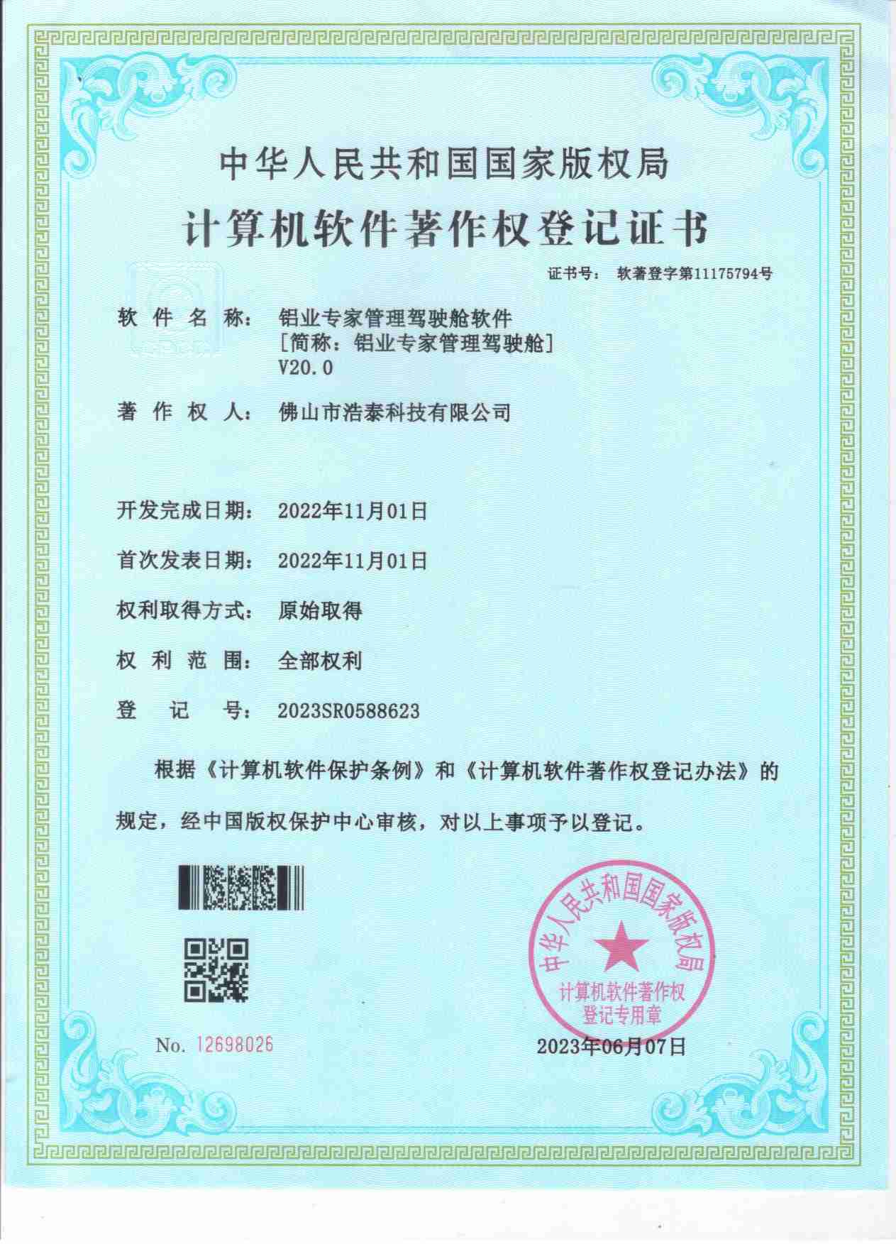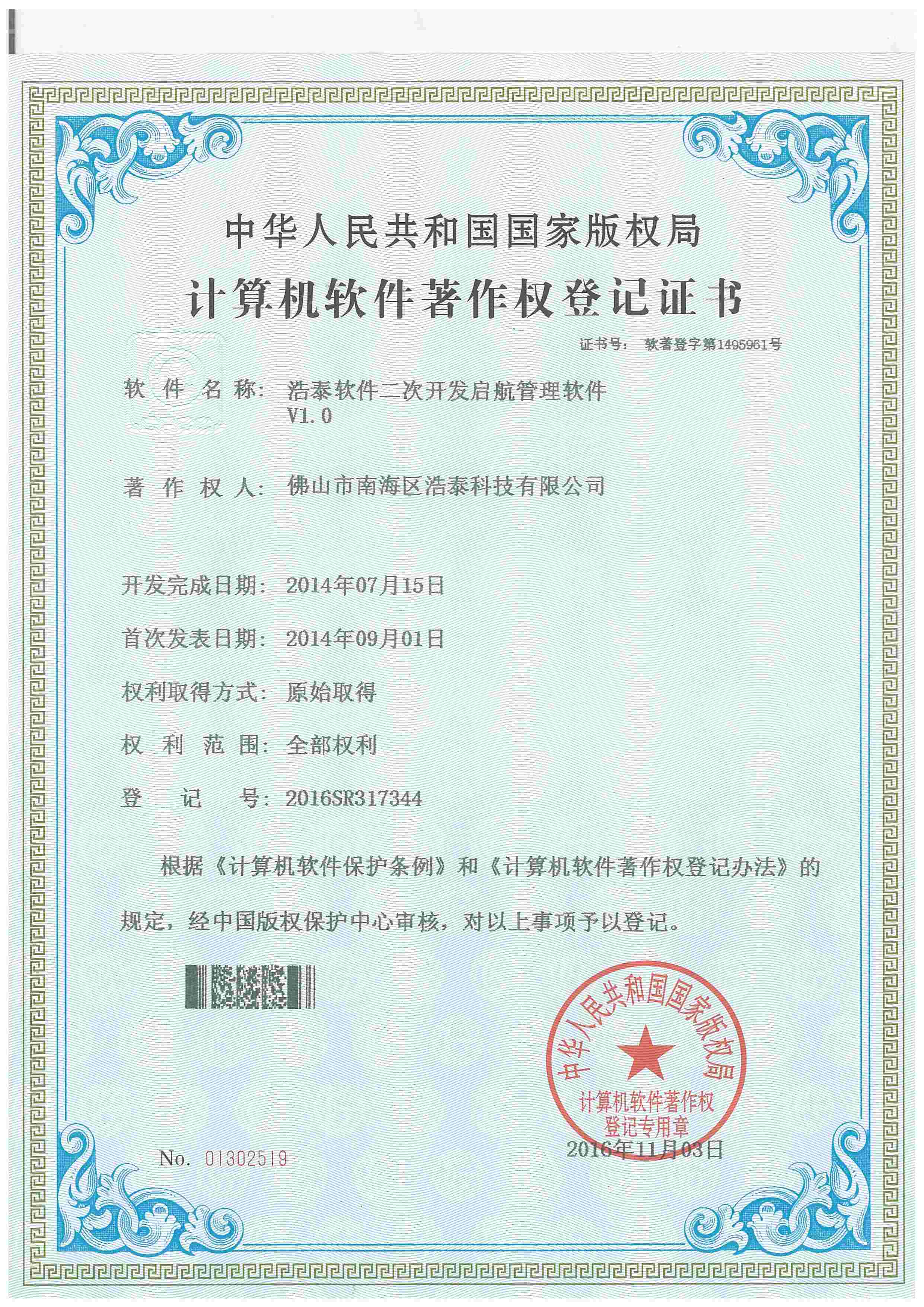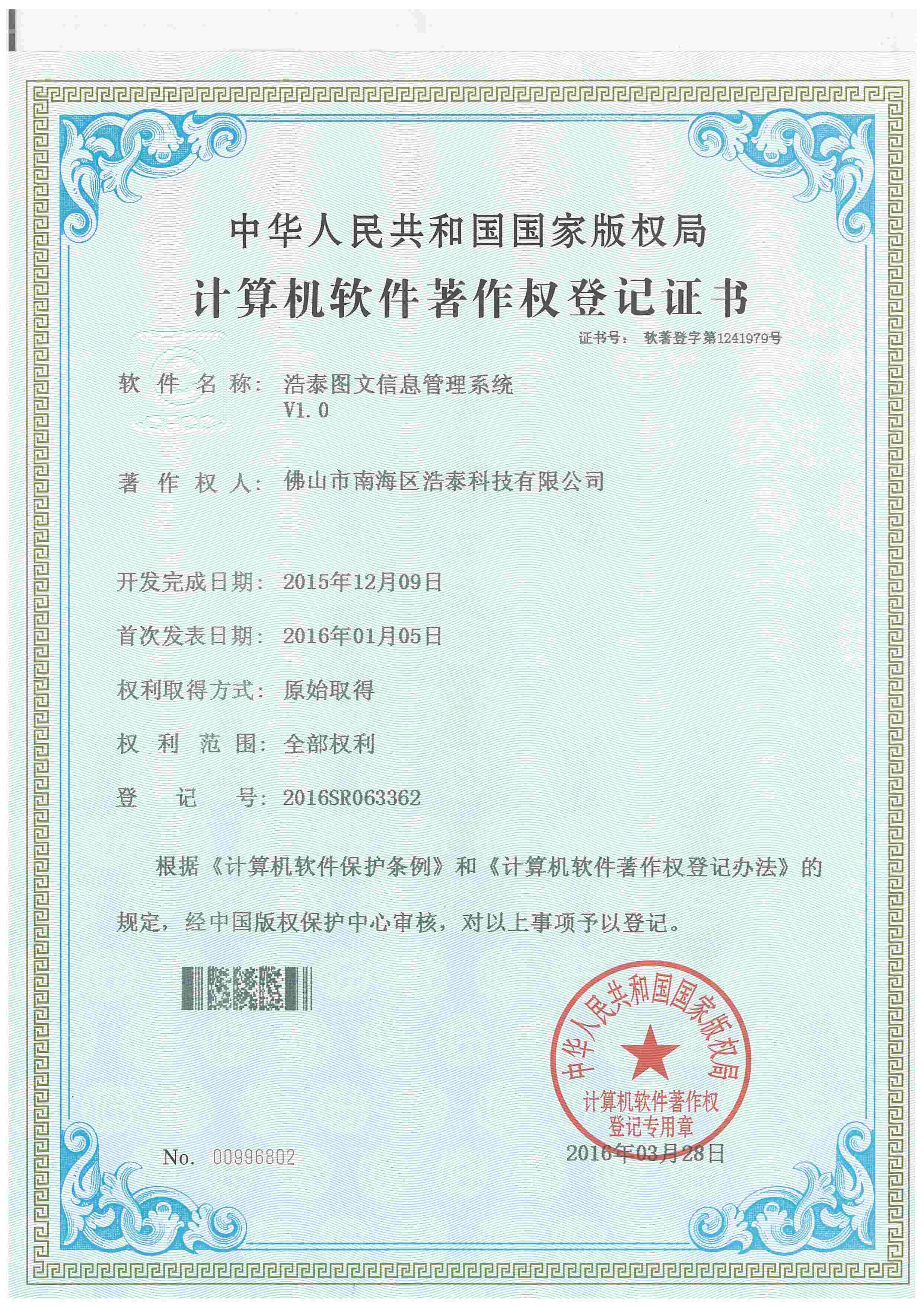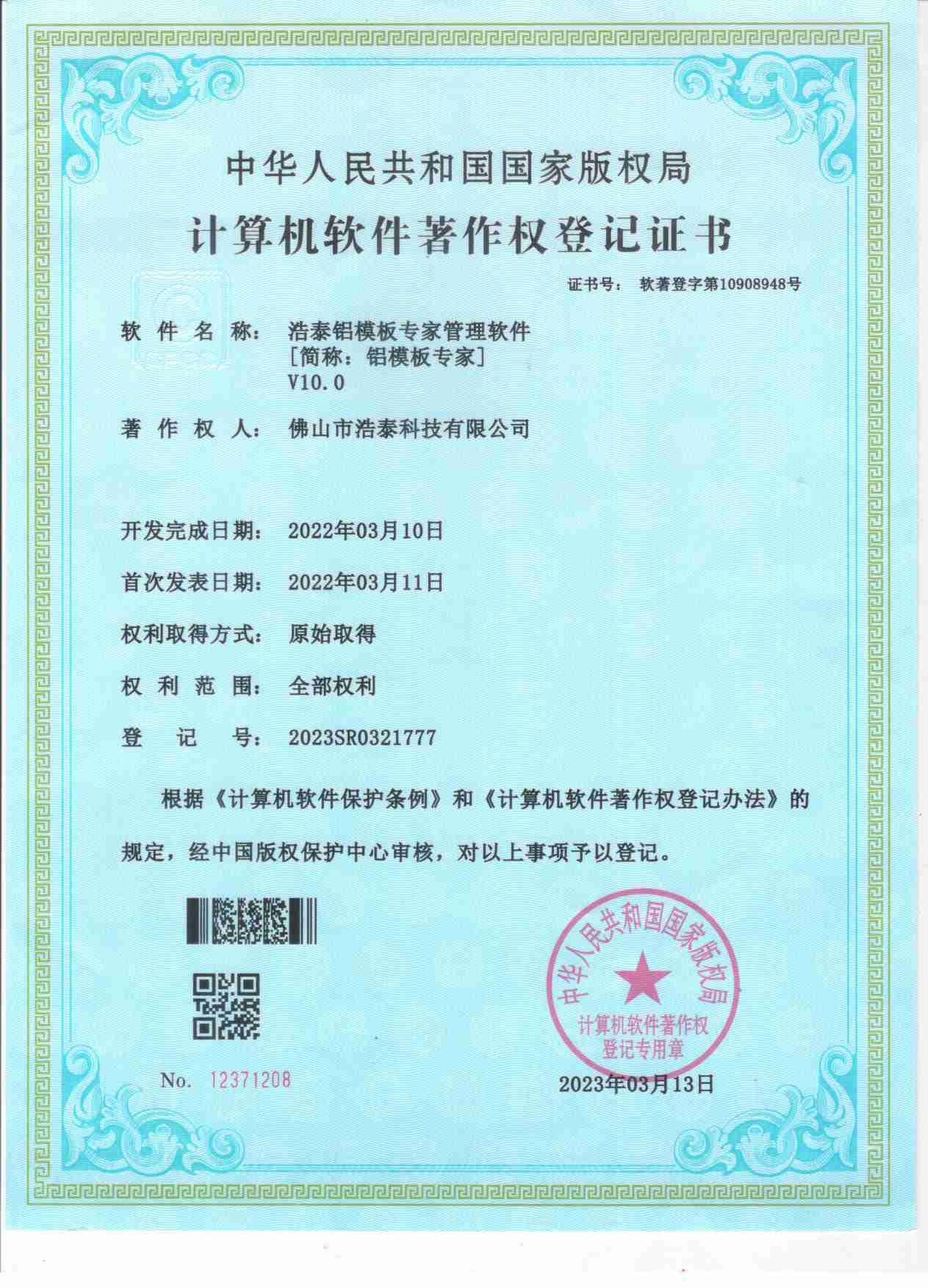 浩泰鋁箔專家系統(tǒng)V1.0,浩泰鋁商家管理軟件V1.0,浩泰鋁模板生產(chǎn)管理系統(tǒng)V1.0,浩泰項(xiàng)目管理系統(tǒng)V1.0,浩泰訂單中心管理軟件V1.0,浩泰鋁業(yè)專家工業(yè)版管理軟件V1.0,浩泰建材租賃信息系統(tǒng)V1.0,浩泰啟航平臺(tái)V2.0,浩泰移動(dòng)辦公中心軟件V1.0,10個(gè)軟件商標(biāo)注冊(cè)成功,鋁業(yè)專家云端ERP上線,同時(shí)我司取得高新技術(shù)企業(yè)榮譽(yù)!